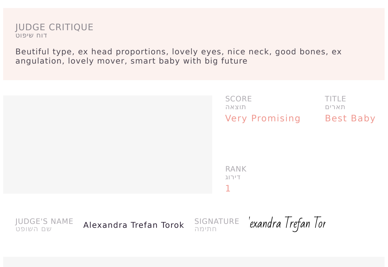Однако - поскольку юниорка, получившая 1 место, уже имеет титул юной чемпионки Израиля, её JCAC переходит к Зои, которая, таким образом, получает первый из необходимых ей двух титулов для того, чтоб закрыть юного чемпиона.