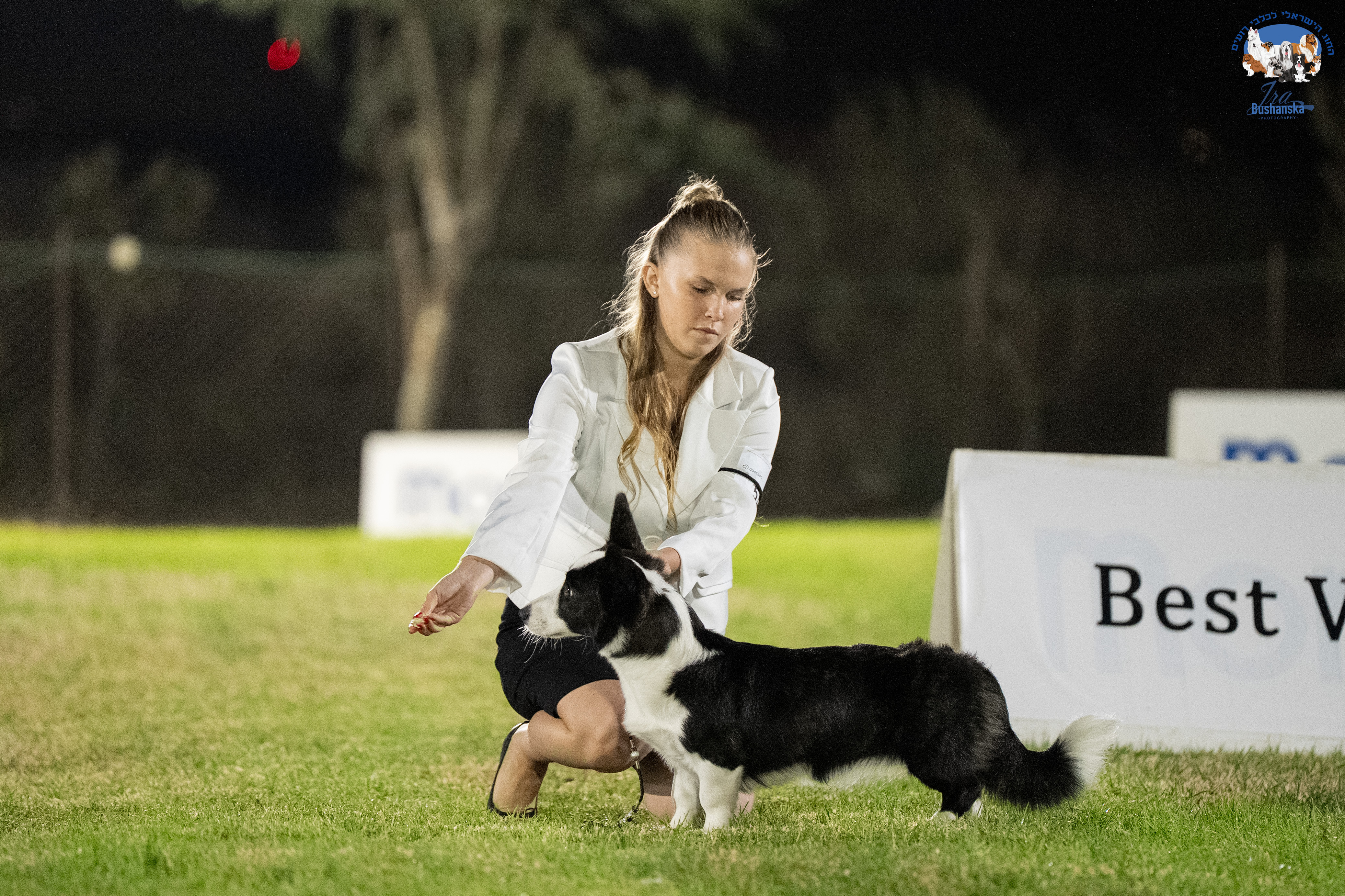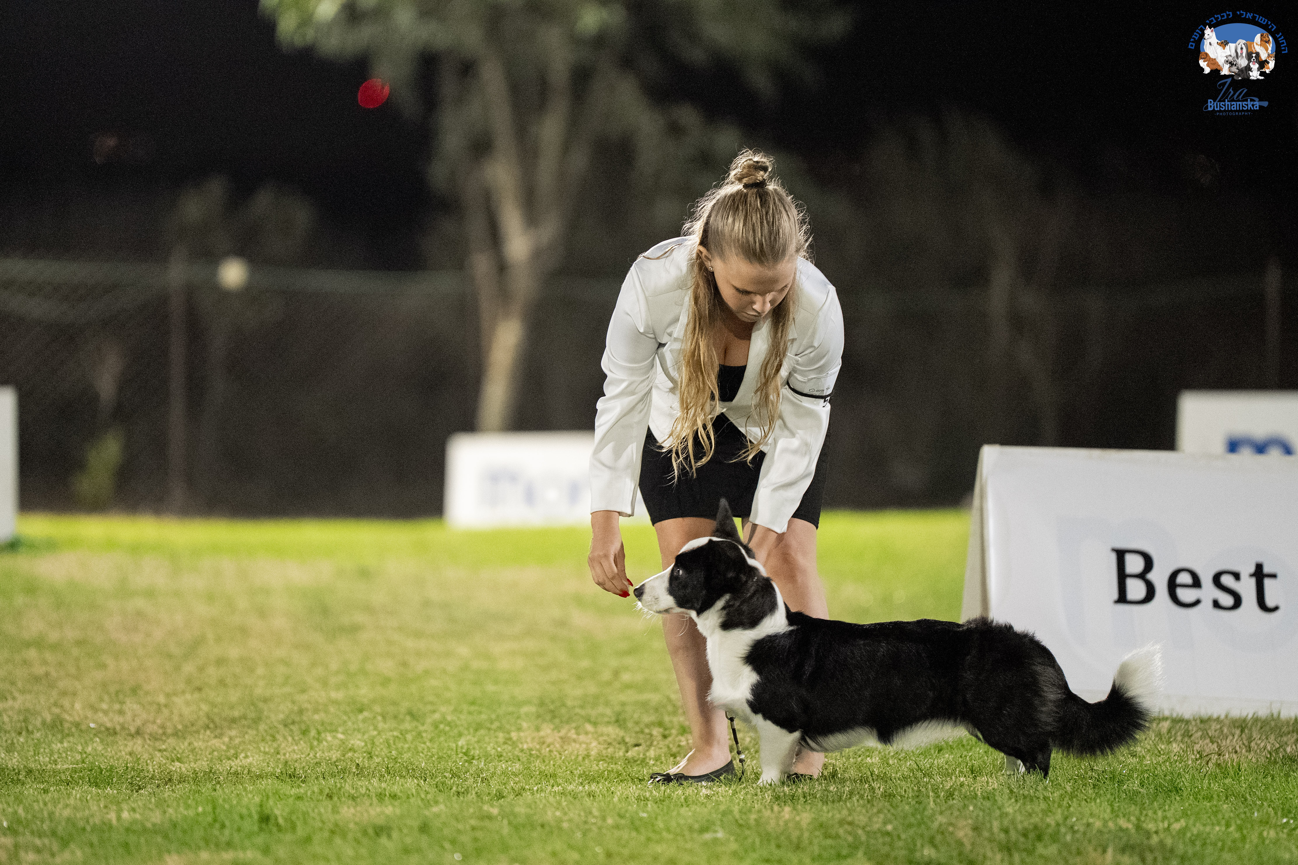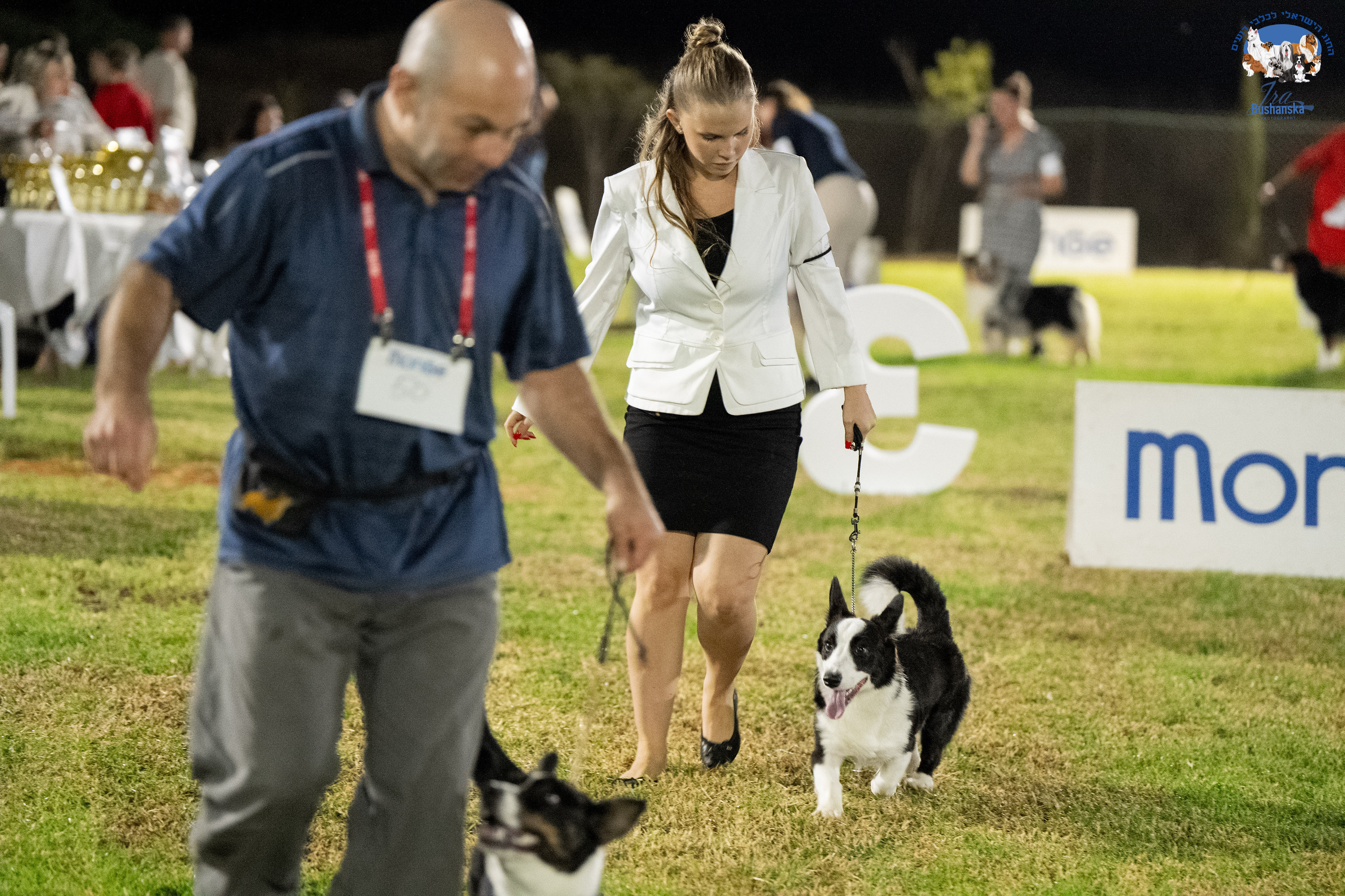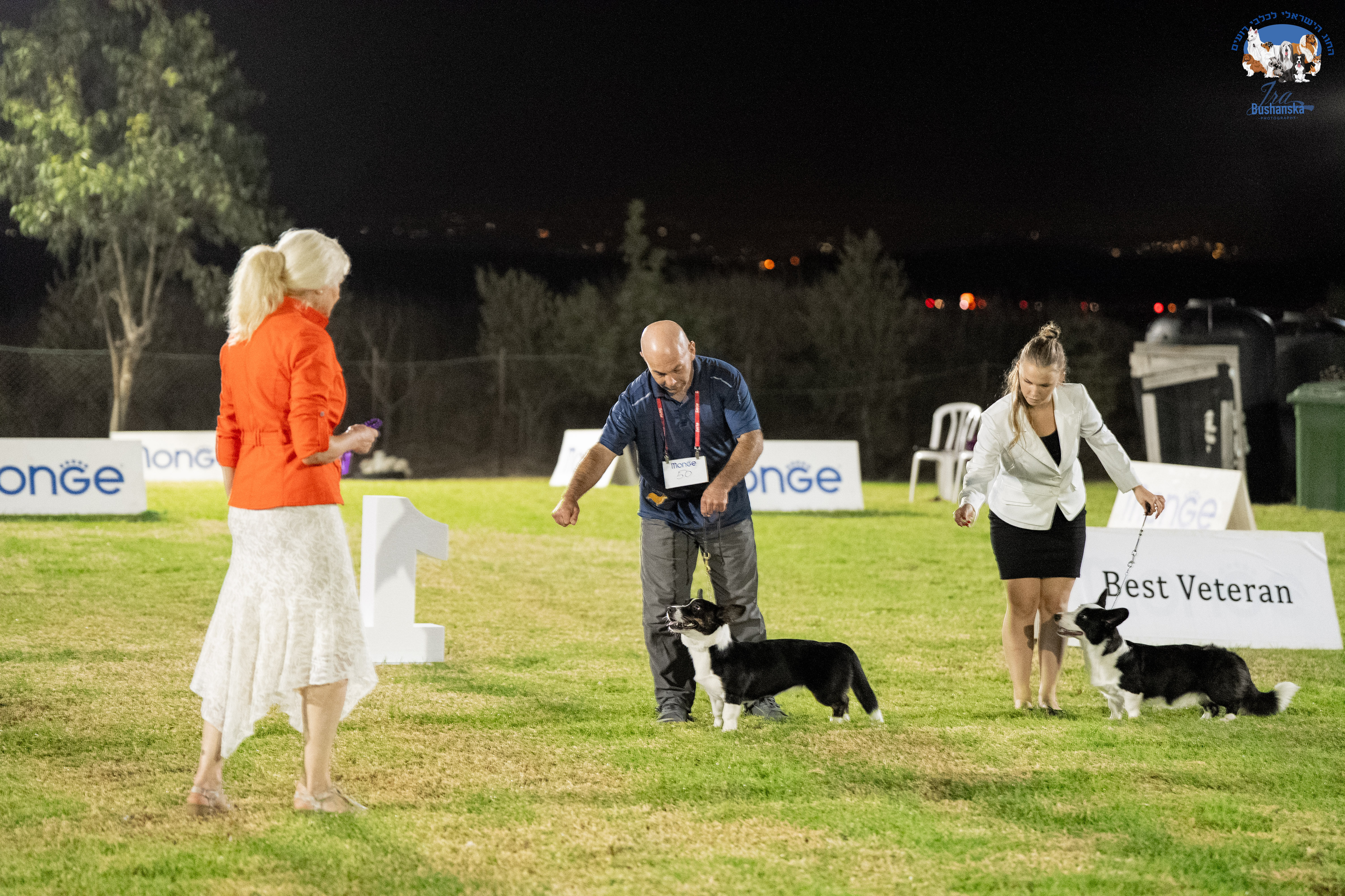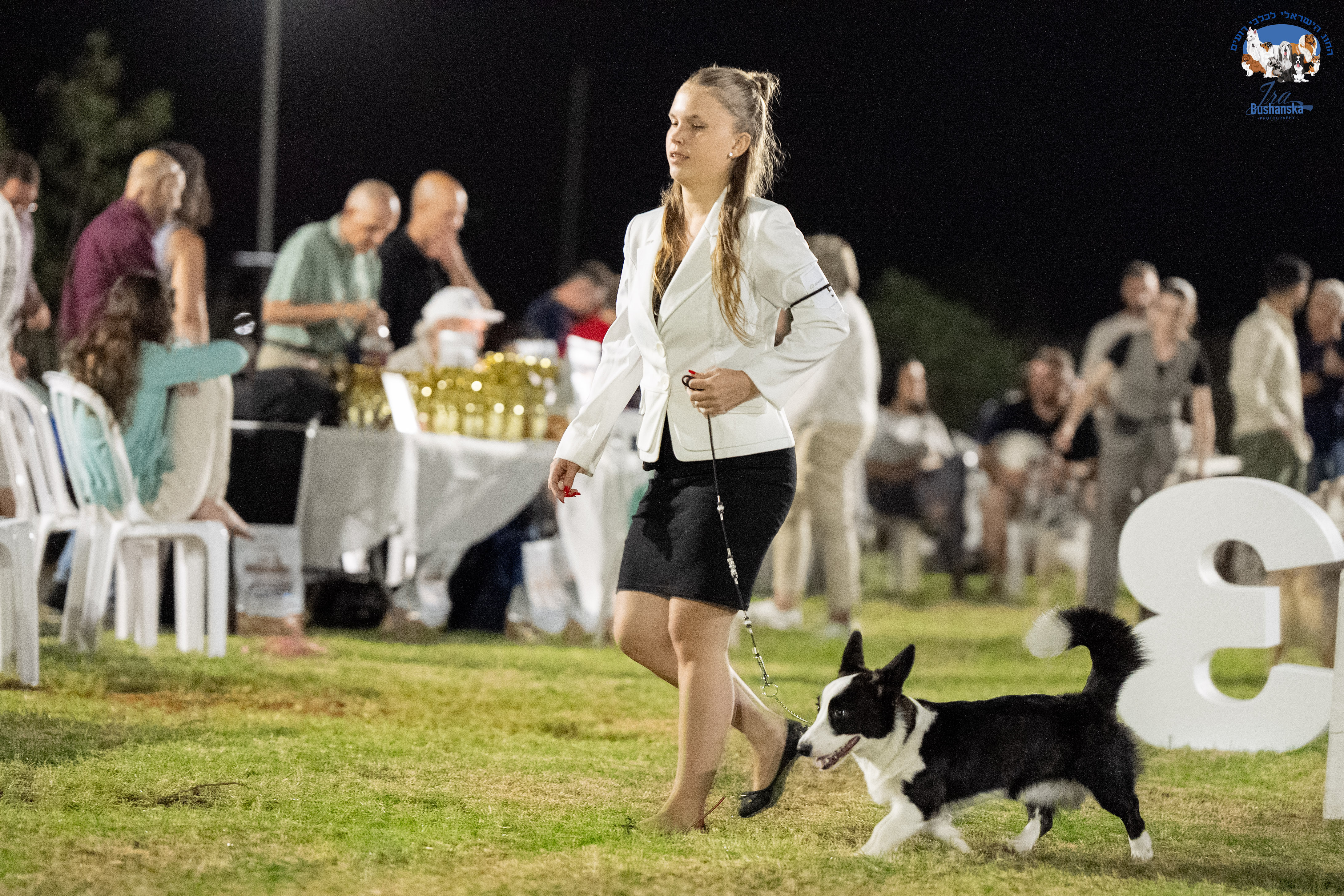 Вечером в четверг 21/08, накануне Ивиных родов, состоялась традиционная ежегодная летняя вечерняя выставка клуба пастушьих собак. Правда, в этот раз по техническим причинам её перенесли с севера (Мишмар а-Эмек) на юг (мошав Ноам). Выставка была двойная - то есть в один вечер было два ринга и две судьи. Один из рингов был вместо отменённой из-за войны в Иране июньской выставки, судила её эксперт-породник и заводчик корги кардиганов из Литвы Livija Zizevske. Поэтому её мнение было нам очень интересно, и только поэтому я не стала отменять запись на эту выставку, хотя мысль такая была - ведь из-за рождения щенка после выставки мы не могли вернуть Тори домой сразу, чтобы не подвергать малыша риску заражения какой-нибудь фигнёй, которую собака может принести с выставки.