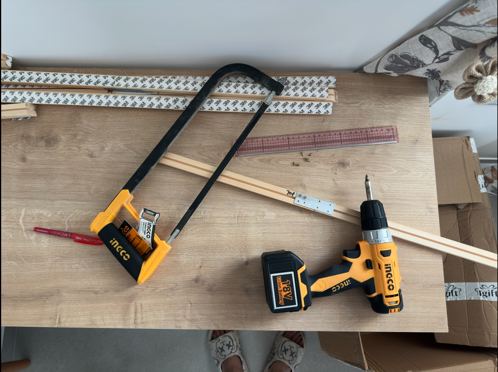 В субботу с самого раннего утра я работала как папа Карло תרתי משמע - пилила, и сверлила, и стучала молотком. Ибо никакие китайцы с их неправильными рамками для картин не лишат меня украшения для нашей новой спальни 😝