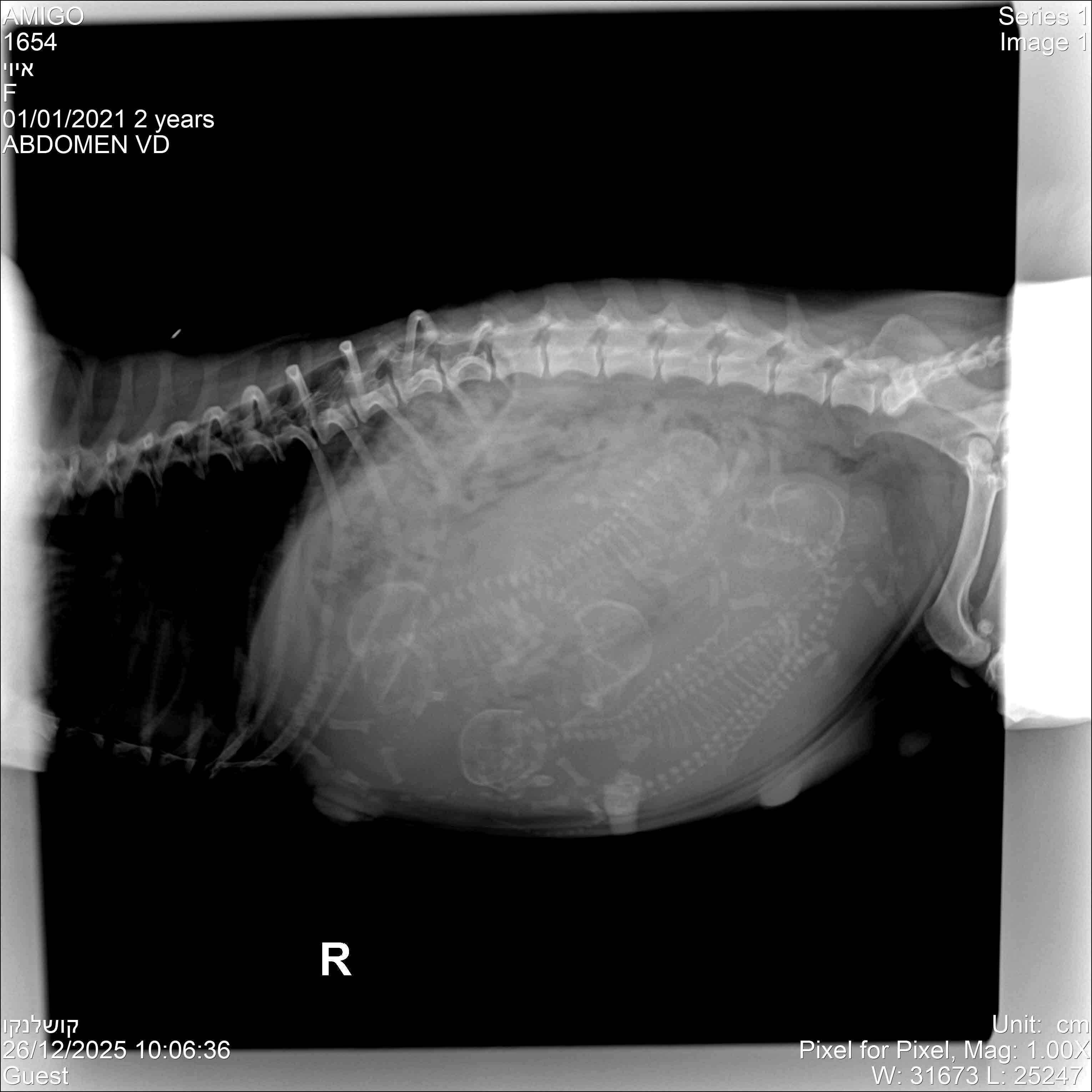 Кстати, в пятницу мы сделали ей рентген - на снимке я увидела 6 щенков. Мнения тех, кому я показала это фото, разошлись от 5 до 8 щенков, но большинство всё же склоняются к шести.